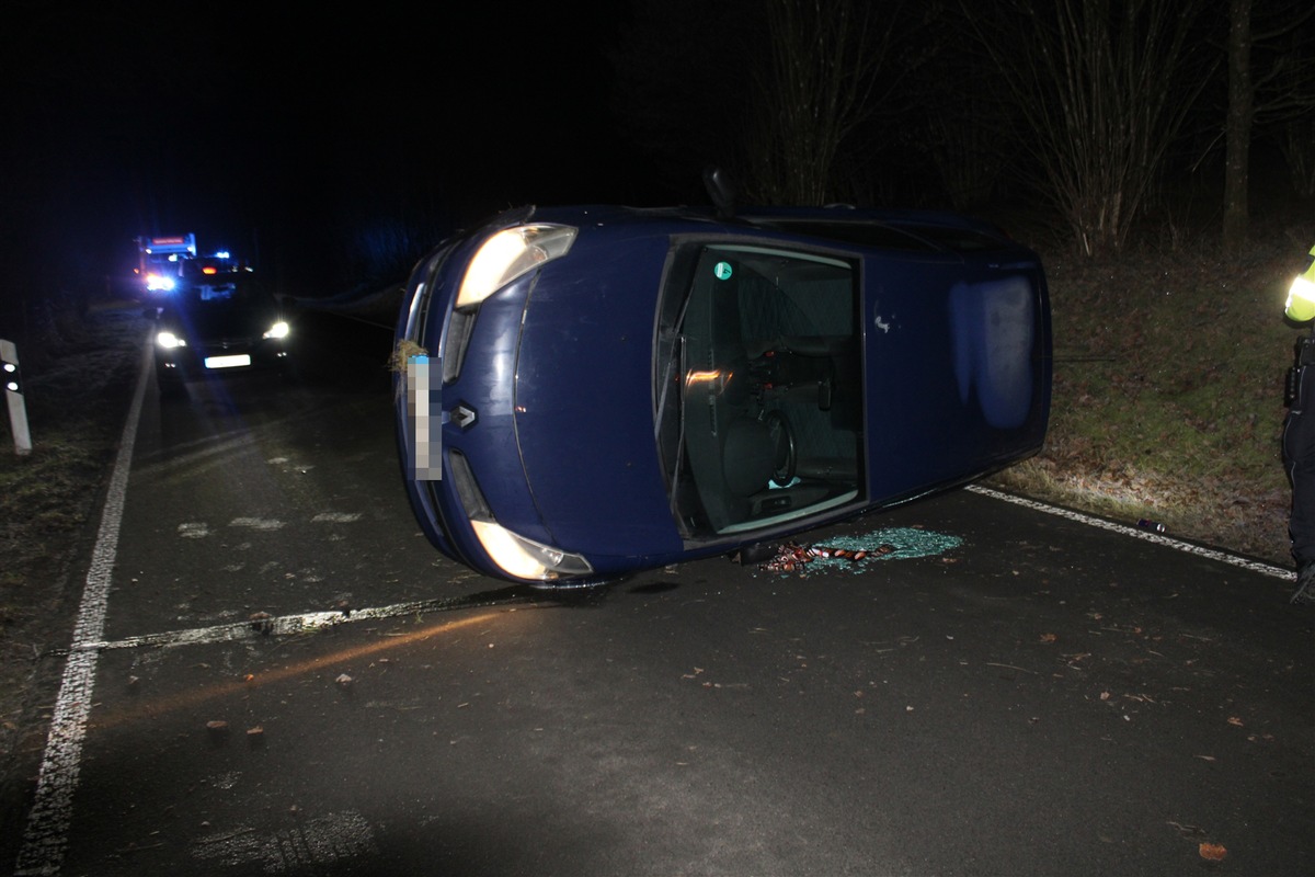 POL-SI: Renault kommt bei Straßenglätte auf Fahrzeugseite zum Liegen -#polsiwi