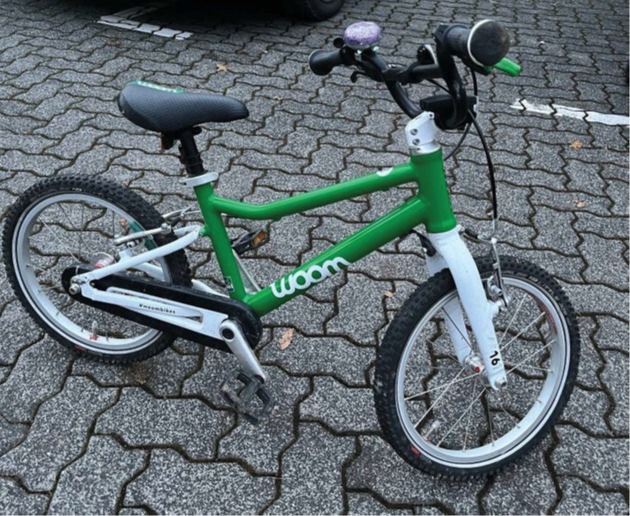 Wer sein grünes Kinderfahrrad der Marke "Woom" mit einer auffällig lilanen Klingel vermisst, meldet sich bitte unter der 0271/7099-0 bei der Siegener Kriminalpolizei.