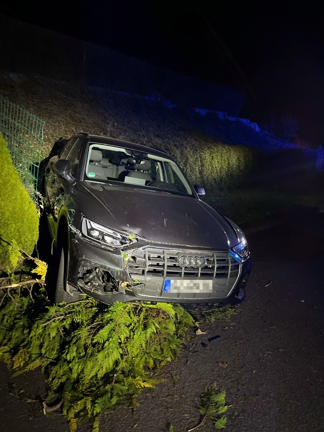 Ab durch die Hecke: Am gestrigen Mittwochabend hat sich ein geparkter Audi selbständig gemacht und kam erst nach dem Durchqueren mehrere Gärten samt Zaun und Hecken auf einem Lebensbaum zum Stehen.
