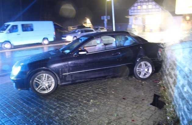Der vermeintliche Unfallverursacher wurde leicht verletzt, alle anderen Beteiligten blieben unverletzt. Es entstand Sachschaden an allen Fahrzeugen sowie an der Mauer.