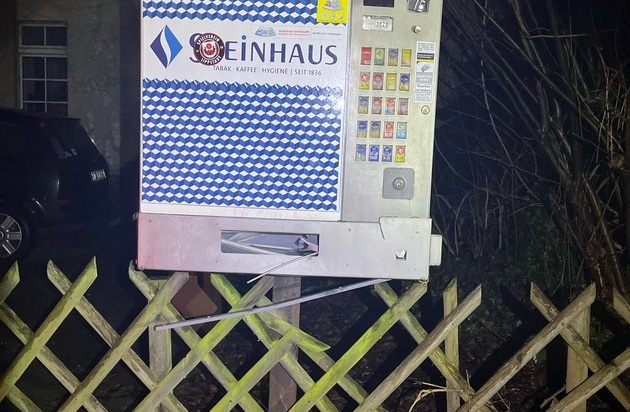 In der vergangenen Nacht wurde ein Anwohner gegen 02:57 Uhr aus dem Schlaf gerissen und stellte fest, dass ein Zigarettenautomat im Nepomukweg, unmittelbar an der dortigen Bushaltestelle, von derzeit Unbekannten angegangen wurde. Der Automat hielt der Sprengung allerdings stand, so dass weder Bargeld noch Zigaretten entwendet werden konnten. Das Gehäuse des Automaten wurde jedoch durch den Druck der Sprengung stark beschädigt. Zeugen, die Hinweise zu verdächtigen Personen und/oder Fahrzeugen geben können, werden gebeten, die Polizei unter der Telefonnummer 02941/91000 zu kontaktieren oder die nächstgelegene Polizeidienststelle aufzusuchen.