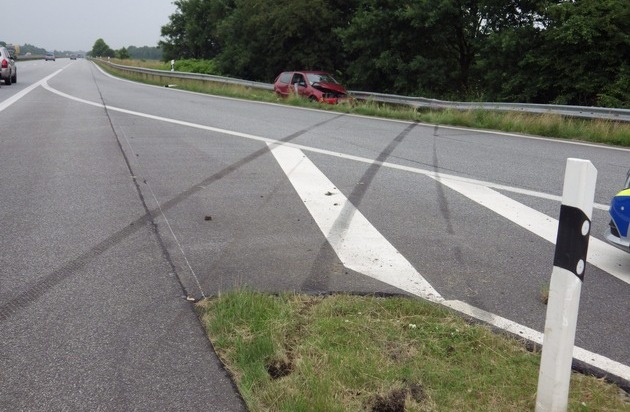 BAB 27 - Gemarkung Hagen. Am Freitag, dem 24. Juni 2016, kam es auf der BAB 27 gegen 14.50 Uhr zu einem Verkehrsunfall. Eine 19-jährige Bremerhavenerin fuhr mit ihrem Pkw VW die Bundesautobahn in Fahrtrichtung Cuxhaven, als sie infolge von Unaufmerksamkeit das Lenkrad ihres Pkw verriss, nach links in die Mittelschutz prallte und anschließend gegenüber heftig gegen die Seitenschutzplanke stieß.