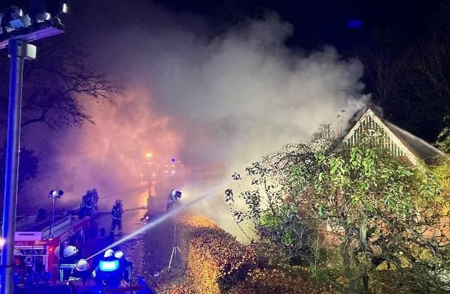 Belum. Am 21. November 2025, gegen 16:30 Uhr, kam es zu einem Brand eines reetgedeckten Einfamilienhauses im Ortsteil Kehdingbruch. Durch das verheerende Feuer wurde das Wohnhaus völlig zerstört. Die beiden Bewohner des Hauses konnten sich rechtzeitig in Sicherheit bringen und blieben unverletzt. Die Löscharbeiten durch die knapp 90 eingesetzten Feuerwehrkräfte dauerten bis in die späten Nachtstunden an. Nach ersten Schätzungen beläuft sich der Gesamtschaden auf ca. 150.000 Euro. Die polizeilichen Ermittlungen zur Brandursache dauern noch an.