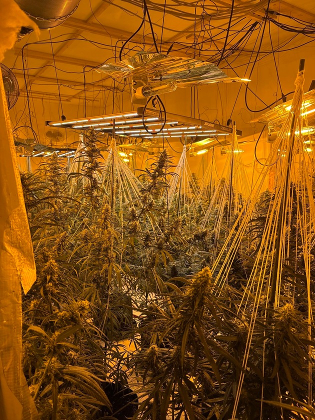 Als im Gebäude die weiteren Wohnungen nach weiteren Personen abgesucht wurden, wurde im Obergeschoss eine umfangreiche Cannabis-Plantage festgestellt (siehe Foto). Die Folgemaßnahmen hierzu, unter anderem mit Unterstützung des THW Bremerhaven sowie die Ermittlungen zum entsprechenden Nutzer der Wohnung, dauern an.