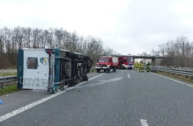 Am frühen Samstagnachmittag kam es auf der A27 zwischen Altenwalde und dem Cuxhavener Kreisel zu einem Verkehrsunfall. Eine 29jährige Frau aus Oyten war mit ihrem Wohnmobil Richtung Cuxhaven unterwegs, als sie vermutlich von einer starken Windböe nach rechts gedrückt wurde. Das Fahrzeug touchierte die Seitenschutzplanke, worauf die Unfallfahrerin das Wohnmobil ruckartig nach links lenkte und die Kontrolle verlor. Das Wohnmobil prallte gegen die Mittelschutzplanke, überschlug sich und kam anschließend auf der Seite liegend auf dem Seitenstreifen zum Stehen. Die Fahrerin und ihr 28jähriger Beifahrer wurden beide mit zum Glück nur leichten Verletzungen ins Krankenhaus gebracht. (Foto im Anhang)