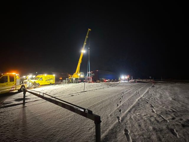Ein 53-Jähriger befährt mit seinem Sattelzug die Bundesstraße 211 in Richtung Brake. Bei winterlichen Straßenverhältnissen kommt er im Kreisverkehr von der Fahrbahn ab und rutscht mit seinem Fahrzeuggespann in die Innenfläche des Kreisverkehrs.