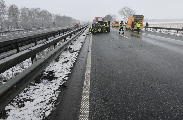 Bei einem Verkehrsunfall auf der Autobahn 28 in Hude ist am Freitag, 13. Februar 2026, gegen 15:05 Uhr, eine Person leicht verletzt worden. Es entstanden hohe Sachschäden. Die Autobahn in Richtung Oldenburg war für eine Stunde voll gesperrt.