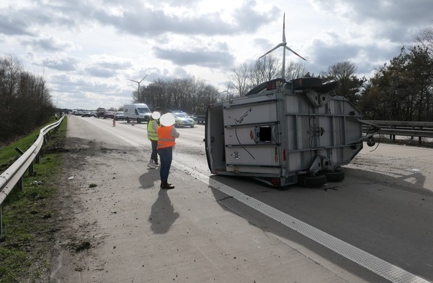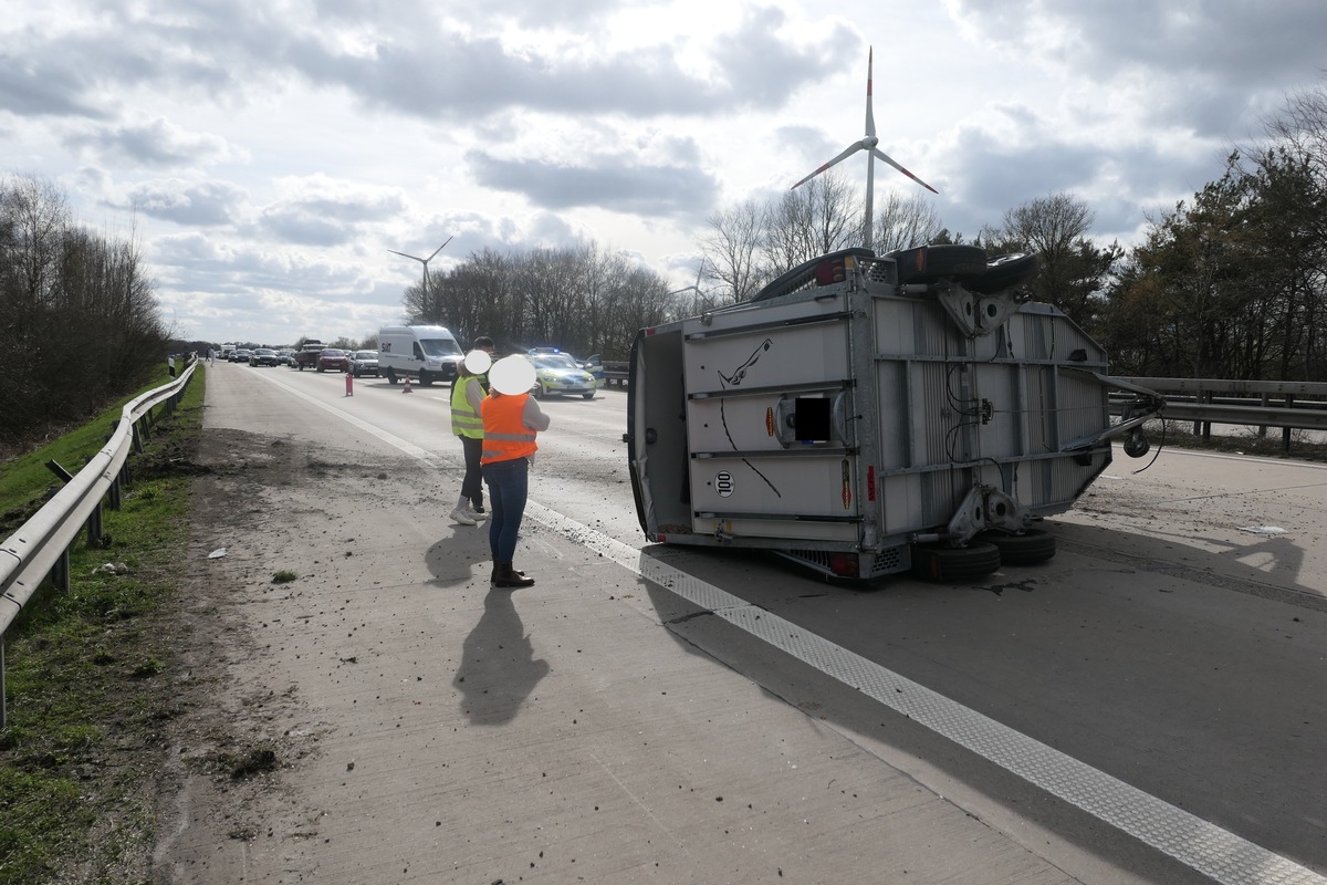 Am Sonntag, 29. März 2026, gegen 15:40 Uhr, gingen mehre Meldungen über einen verunfallten Pferdeanhänger auf der Autobahn 1 im Bereich des Autobahndreiecks Ahlhorner Heide ein. In dem Pferdeanhänger sollte sich ein Pferd befinden.