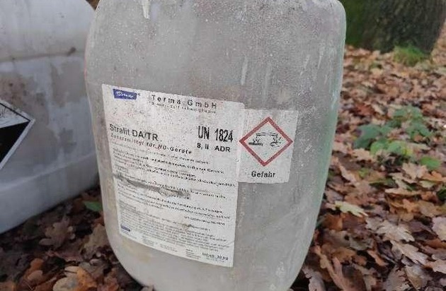 Bei den Kanistern handelt es sich ursprünglich um Behälter, die mit Natronlauge befüllt waren. Zwischenzeitlich wurden sie jedoch allesamt mit einem Lösungsmittel für Farben neu befüllt. Zwar kam es in keinem der Fälle zum Austritt der Flüssigkeit, dennoch bestand eine Gefahr für Mensch und Umwelt. Die Kanister wurden allesamt durch eine Fachfirma geborgen.