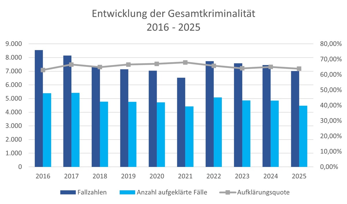 POL-VER: Polizeiinspektion Verden/Osterholz gibt polizeiliche Kriminalstatistik (PKS) 2025 für den Landkreis Verden bekannt - weiterer Rückgang der Gesamtkriminalität