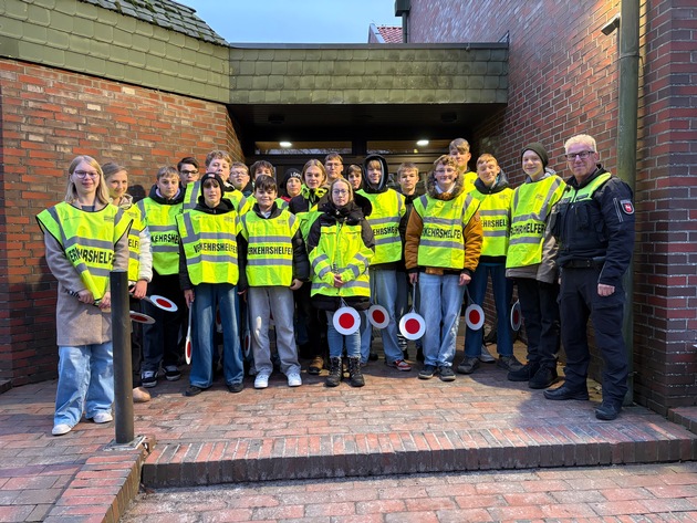 Nach mehreren Ausbildungsterminen sowie einer abschließenden Theorie- und Praxisprüfung haben 13 neue Schülerlotsinnen und -lotsen der Oberschule Bockhorn ihren Dienst aufgenommen. Sie unterstützen in der dunklen Jahreszeit die jüngeren Schülerinnen und Schüler dabei, sicher zur Schule zu gelangen. Die Verkehrshelfer sichern mit gut sichtbaren gelben Warnwesten und Winkerkellen insbesondere die Gefahrenbereiche an der Kreuzung der Schulstraße sowie vor der Grundschule ab. Da Oberschule und Grundschule direkt nebeneinander liegen, ist es naheliegend, dass ältere Schülerinnen und Schüler Verantwortung übernehmen und die jüngeren Kinder auf ihrem Schulweg unterstützen. Das seit 2013 bestehende Projekt ist im Landkreis Friesland einzigartig. Der Präventionsbeauftragte der Polizei Varel, Eugen Schnettler, der für die Ausbildung verantwortlich ist, betont die Bedeutung des Engagements: Gemeinsam mit den bereits länger tätigen Lotsinnen und Lotsen versehen derzeit insgesamt 22 Verkehrshelferinnen und -helfer ihren freiwilligen Dienst vor der Grundschule Bockhorn. Schnettler hebt hervor, dass das Projekt über die Jahre dazu beigetragen habe, das Verkehrsverhalten von Auto- und Fahrradfahrenden im Bereich der Schulen nachhaltig zu verbessern. Die Schülerlotsinnen und -lotsen leisten damit einen wichtigen Beitrag zur Sicherheit im Straßenverkehr.