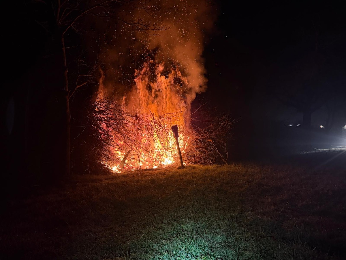 Am frühen Morgen des 10.03.2026 geriet auf einem Grundstück in der Karl-Nieraad-Straße in Varel aus bislang unbekannter Ursache eine größere Ansammlung von Grünschnitt aus Baumpflegearbeiten in Brand.