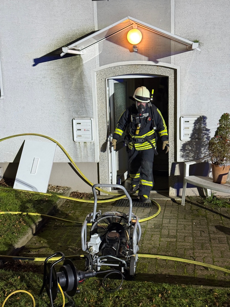 Weitere Einsatzkräfte kontrollierten die übrigen Räume der Wohnung sowie den darüberliegende Spitzboden. Nach Abschluss der Löscharbeiten wurde die Brandwohnung belüftet und entraucht.