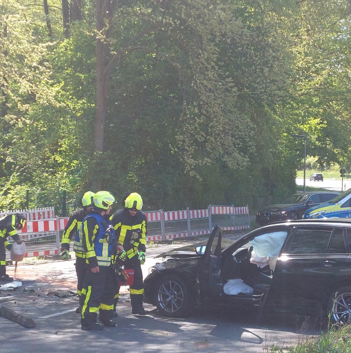 Vor Ort waren zwei Fahrzeuge kollidiert. Zwei verletzte Personen wurden durch den Rettungsdienst versorgt und anschließend in umliegende Krankenhäuser transportiert. Die Feuerwehr stellte den Brandschutz sicher, streute auslaufende Betriebsmittel ab, klemmte die Batterien der beteiligten Fahrzeuge ab und sicherte die Einsatzstelle gegen den fließenden Verkehr. Neben den hauptamtliche Kräften war auch der Löschzug Stadt alarmiert. Feuerwehr und Rettungsdienst waren mit sechs Fahrzeugen und 17 Einsatzkräften im Einsatz.