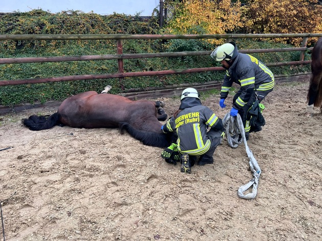 Die Löscheinheiten Esborn, Wengern und Alt-Wetter wurden um 17:44 Uhr zu einer Technischen Hilfeleistung in den Ortsteil Esborn alarmiert. Auf einem dortigen Reiterhof sollte eine Person unter einem Pferd eingeklemmt sein. Als die ersten Einsatzkräfte vor Ort eintrafen, wurde direkt die Situation erkundet. Die verunfallte Person war bereits nicht mehr unter dem Pferd eingeklemmt und wurde durch die Kräfte erstversorgt sowie dann an den Rettungsdienst übergeben. Dieser transportierte die Person im Anschluss in ein nahe gelegenes Krankenhaus. Durch eine im Umgang mit Pferden erfahrene Feuerwehrkameradin wurde sich parallel um das Tier gekümmert, da dieses zunächst nicht eigenständig aufstehen konnte. Mit Hilfe einer Rundschlinge wurde das Pferd schonend durch die Einsatzkräfte in eine andere Position gebracht, sodass es danach eigenständig wieder aufstehen konnte und wohl auf war. Für die ehrenamtlichen Kräfte konnte dieser Einsatz nach 40 Minuten beendet werden.