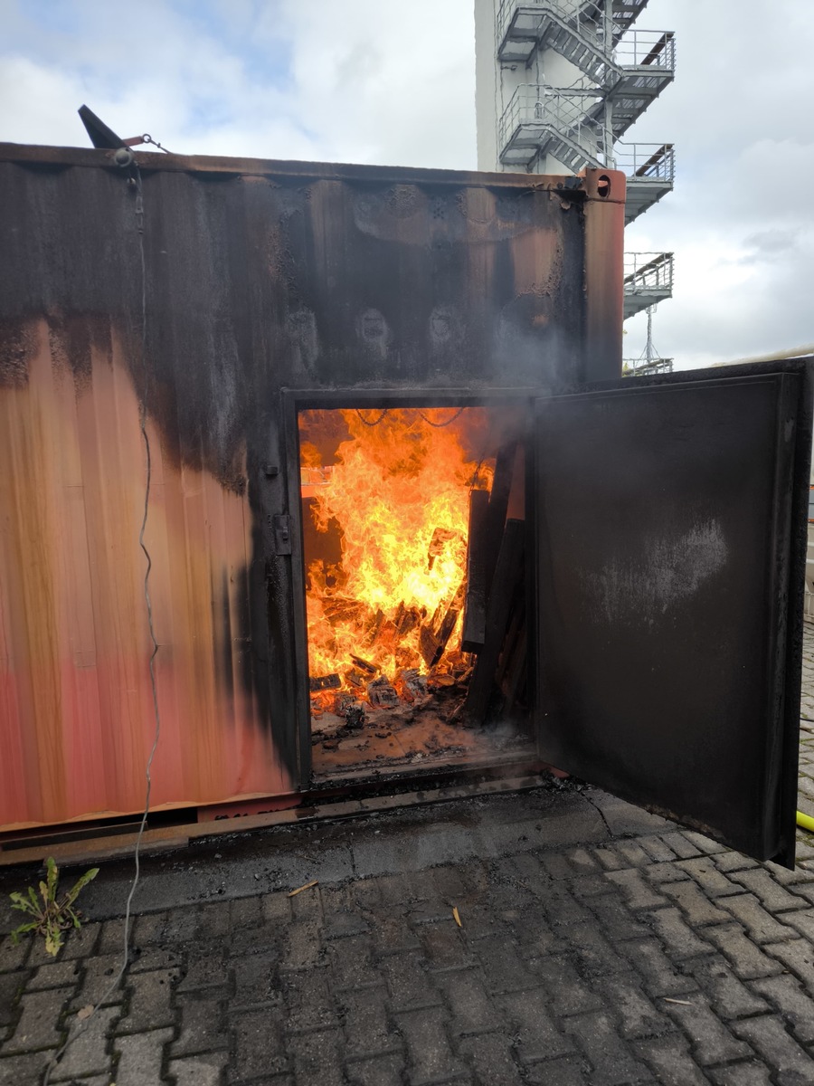 Nach einer theoretischen Einweisung in die Brandübungsanlage und einer Unterweisung über mögliche Gefahrenpunkte ging es für die erste Gruppe von acht Einsatzkräften in die Praxis. Dort warteten realistische Szenarien mit Hitze, Rauch und eingeschränkter Sicht - Bedingungen, die im Einsatzfall jederzeit auftreten können.