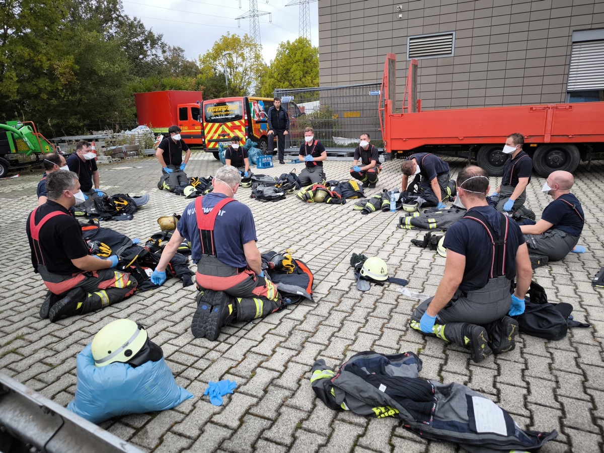 Währenddessen übernahmen die übrigen acht Teilnehmenden wichtige Aufgaben außerhalb der Übungsanlage, darunter den Aufbau eines Löschangriffs sowie die Atemschutzüberwachung. Nach Abschluss des ersten Durchgangs tauschten die Gruppen, sodass alle Feuerwehrmitglieder die Gelegenheit hatten, die anspruchsvolle Praxisausbildung zu absolvieren.