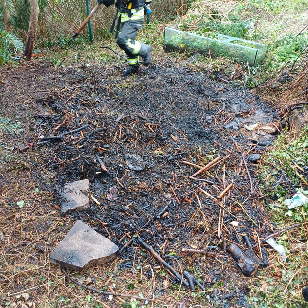 Der Tagesdienst der Feuerwehr Wetter (Ruhr) wurde heute um 13:03 Uhr zu einer unklaren Rauchentwicklung in Verbindung mit einer Geruchsbelästigung im Bereich der Kaiserstraße alarmiert. Auf der Anfahrt stellten die eingesetzten Kräfte fest, dass die Rauchentwicklung aus dem Hinterhof eines Wohn- und Geschäftshauses in der Kaiserstraße kam. Bei Eintreffen wurde festgestellt, dass eine Person unerlaubt in größerem Umfang Grünabfälle verbrannte. Da der Betreiber keine Löschmittel bereitgehalten hatte, wurde das Feuer von einem Trupp mit Wasser abgelöscht und anschließend auseinandergezogen, um auch die letzten Glutnester zu erreichen. Abschließend wurde der Bereich mit der Wärmebildkamera kontrolliert. Weitere Maßnahmen waren nicht erforderlich, und die Feuerwehrkräfte konnten den Einsatz nach rund einer Stunde beenden.