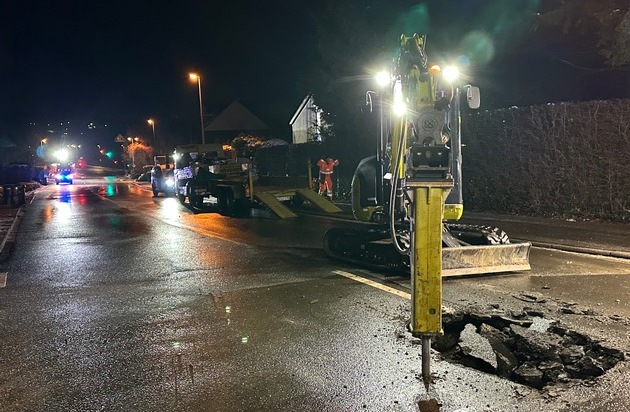 Noch in der Nacht wurde ein durch die AVU beauftragtes Tiefbauunternehmen tätig, um die Fahrbahn auf der Bochumer Straße zu öffnen.