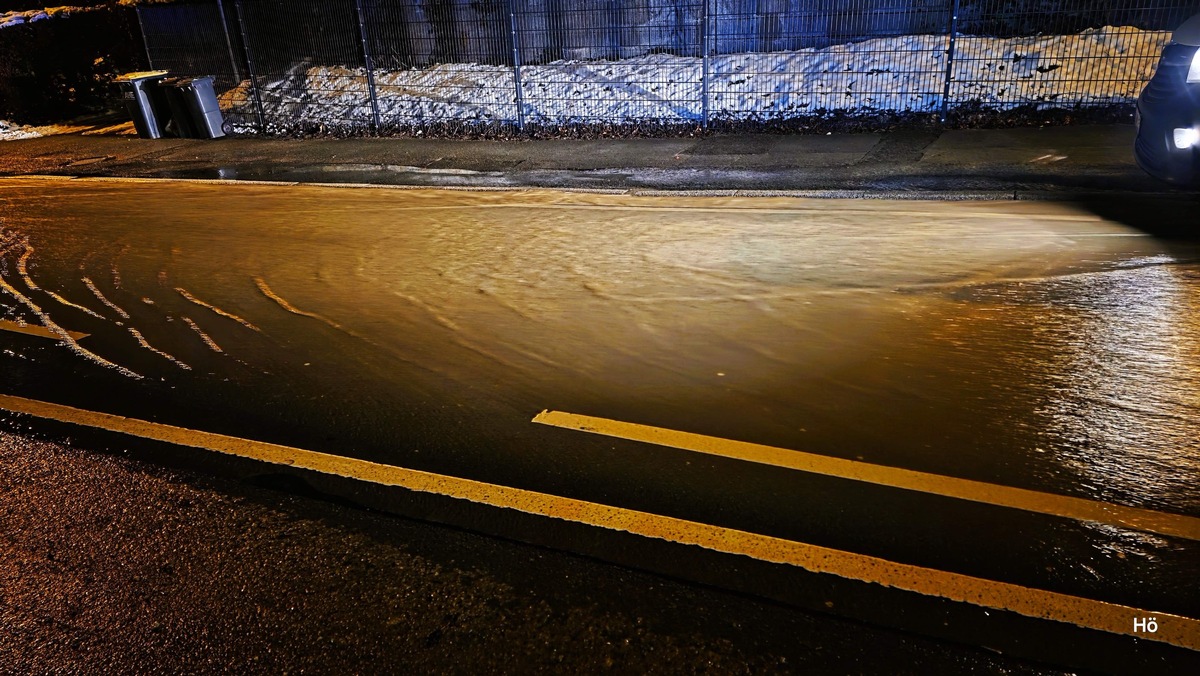 Am Dienstagabend wurde die Feuerwehr Sprockhövel gegen 21:45 Uhr zu einem Wasserrohrbruch an der Bochumer Straße alarmiert. Unter der Fahrbahn im Kreuzungsbereich mit der Straße "Auf Brockhausen" traten große Mengen Wasser aus. Die Feuerwehr sperrte den Bereich großräumig ab und öffnete mehrere Straßeneinläufe, damit das Wasser bei den kalten Temperaturen besser in die Kanalisation geführt werden konnte. Der zuständige Energieversorger schieberte die betroffene Leitung ab. In dessen Folge waren anliegende Wohnhauser auch nicht mehr mit Trinkwasser versorgt.