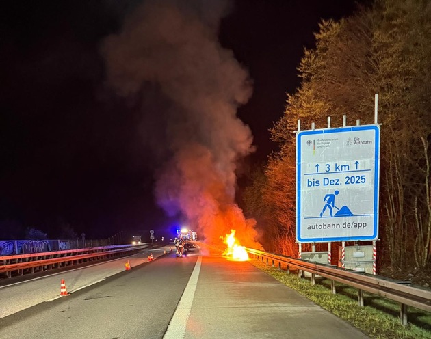 Am Donnerstagmorgen wurden die freiwilligen Kräfte der Feuerwehr Sprockhövel früh aus dem Schlaf gerissen. Gegen 1.05 Uhr wurden sie alarmiert, da auf dem Seitenstreifen der BAB 43 in Fahrtrichtung Münster ein PKW brannte. Bei Eintreffen der Einsatzkräfte an der Einsatzstelle stand das Fahrzeug bereits im Vollbrand. Die Einsatzkräfte sicherten die Einsatzstelle gegen den fließenden Verkehr und leuchteten diese aus. Unter Atemschutz wurde der Brand mit einem Rohr gelöscht. Zum Abtransport des Fahrzeuges wurde ein Abschleppunternehmen nachgefordert. Einsatzende für die Feuerwehr war um 2.30 Uhr. Die Feuerwehr war mit 21 Kräften und 4 Fahrzeugen ausgerückt.