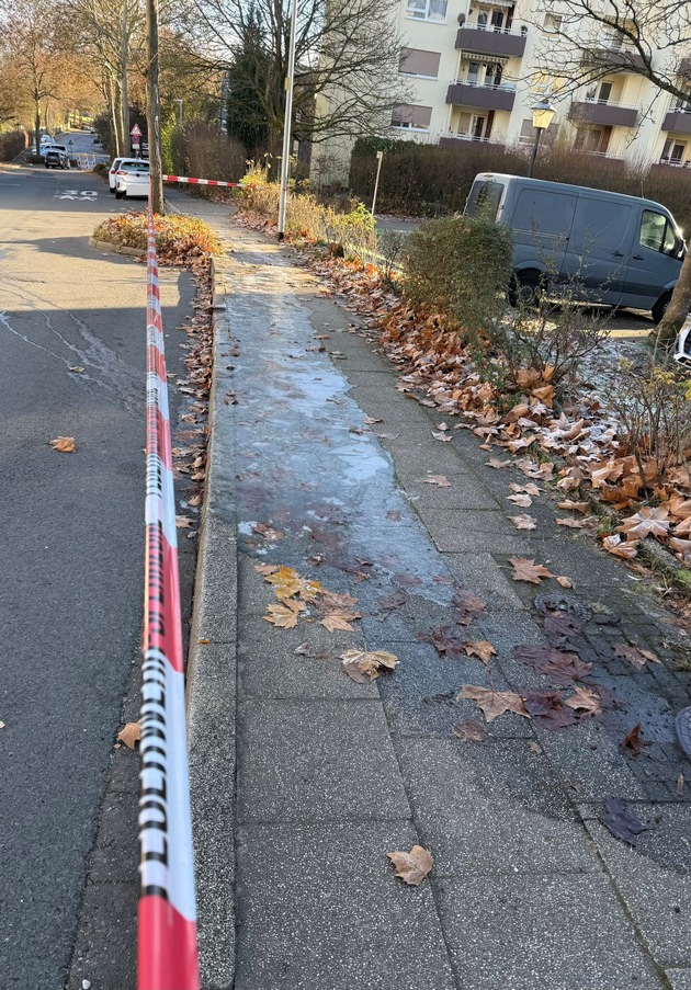 Am Samstag um 10:24 Uhr wurde ein undichter Hydrant am Westender Weg gemeldet. Der Einsatzführungsdienst fuhr die Einsatzstelle an und stellte fest, dass austretendes Wasser eine Eisfläche auf dem Gehweg gebildet hatte. Der Bereich wurde abgesperrt und der städtische Baubetriebshof verständigt, um die Fläche abzustreuen und die Rutschgefahr zu beseitigen.