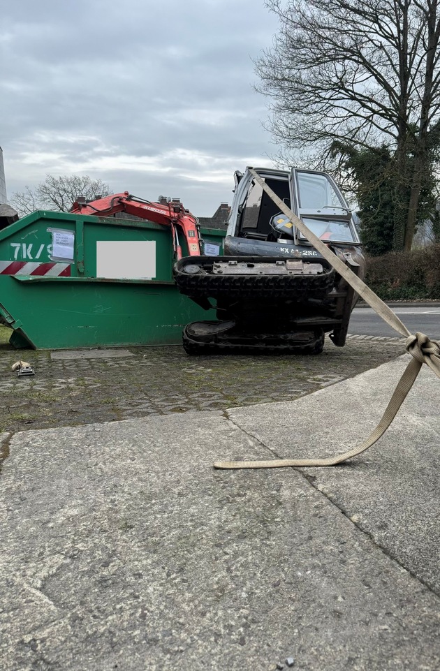Bereits am Freitagnachmittag folgte der nächste Einsatz: Auf der Straße "Auf der Helle" war ein Minibagger in Schieflage gegen einen Container geraten und musste im Rahmen der Gefahrenabwehr aufgerichtet und stabilisiert werden, um eine weitere Schadensausbreitung zu verhindern. Hierfür kam der Gerätewagen Logistik der Feuerwehr Herdecke zum Einsatz, der über einen Kran verfügt und das kontrollierte Aufrichten des Baggers ermöglichte. Minimal ausgetretene Betriebsmittel wurden vorsorglich abgestreut, bevor die Einsatzstelle an den Verantwortlichen übergeben werden konnte.