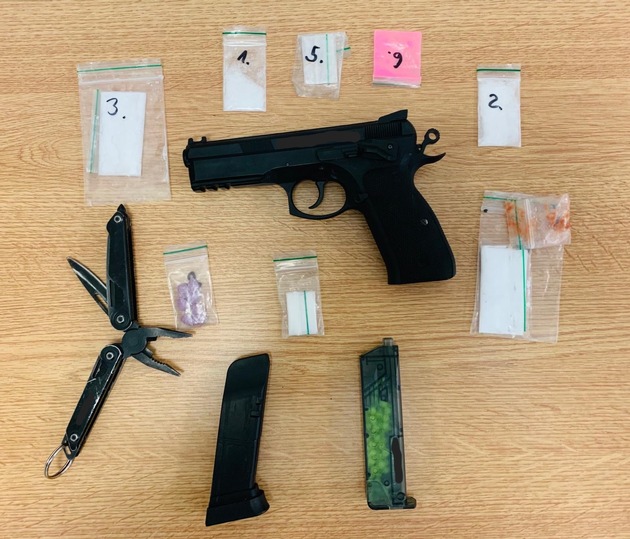 Die Uniformierten beschlagnahmten die Pistole, die Betäubungsmittel und das Messer umgehend.