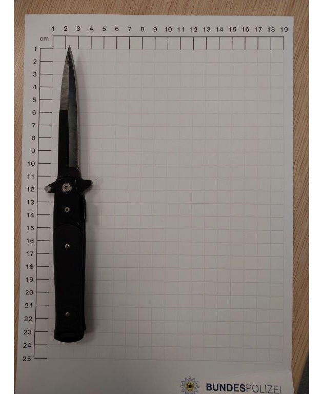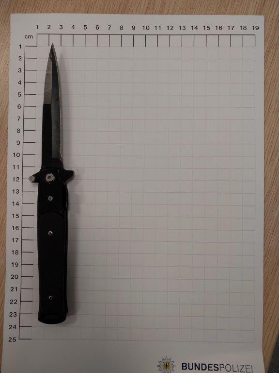 Eine durchgeführte fahndungsmäßige Überprüfung des Mannes verlief negativ. Das Springmesser wurde sichergestellt, und der Betroffene belehrt.
