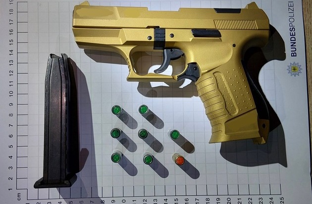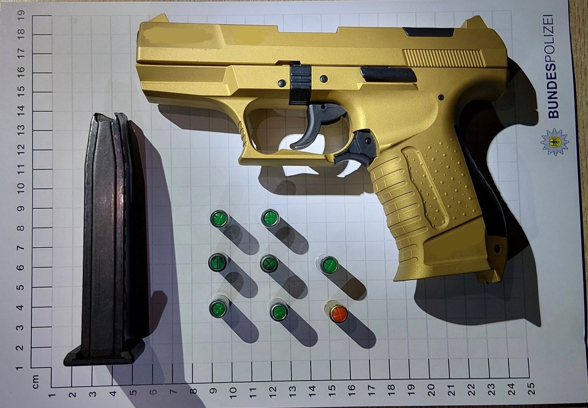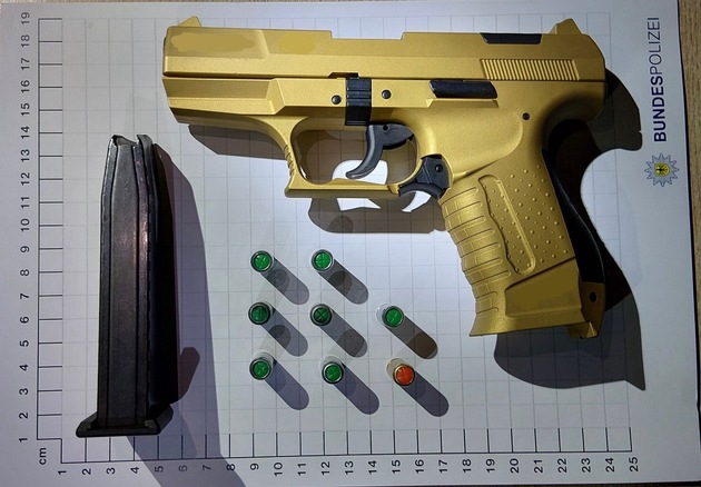 Gegen 18:15 Uhr überprüften die Beamten den jungen Deutschen. Da er angab, keine Ausweisdokumente mitzuführen, durchsuchten die Beamten ihn nach solchen. Diese fanden sie nicht, jedoch führte der Jugendliche aus Hamm eine Schreckschusswaffe und Munition in seiner Bauchtasche mit. Die Einsatzkräfte beschlagnahmten die Waffe und die Munition umgehend und belehrten den 15-Jährigen. Dieser gab an, dass die Waffe seinem Bruder gehören würde.
