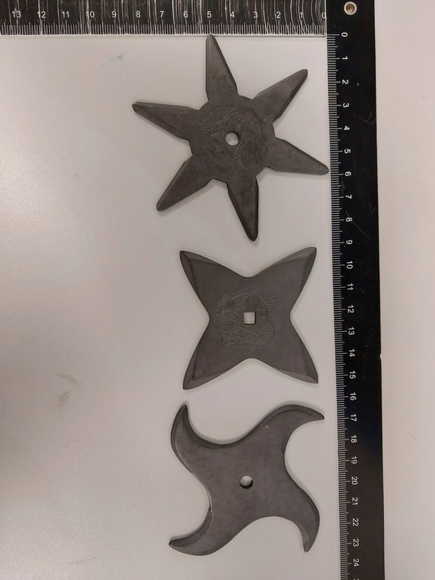 Der Mann gab gegenüber den Beamten an, die Gegenstände zuvor in Japan als Souvenir gekauft zu haben und nicht gewusst zu haben, dass sich diese noch in seiner Tasche befanden. Nach den Bestimmungen des deutschen Waffengesetzes gelten Wurfsterne jedoch als verbotene Waffen. Bereits der Besitz stellt eine Straftat dar.