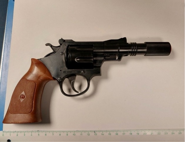 Gegen 17:45 Uhr bemerkte ein Reisender beim Einstieg in eine S-Bahn der Linie S 46 einen waffenähnlichen Gegenstand in der Jackentasche eines Mannes. Der 19-jährige Zeuge teilte der S-Bahn Berlin daraufhin schriftlich, über den Service-und-Security-Chats, seine Beobachtungen mit. Einsatzkräfte der Bundespolizei veranlassten die Einstellung des Zugverkehrs und nahmen den 22-Jährigen kurz darauf innerhalb der betroffenen S-Bahn am Bahnhof Berlin Schöneweide vorläufig fest. In der Jackentasche des jungen Mannes fanden sie einen Revolver aus Kunststoff und stellten diesen sicher.