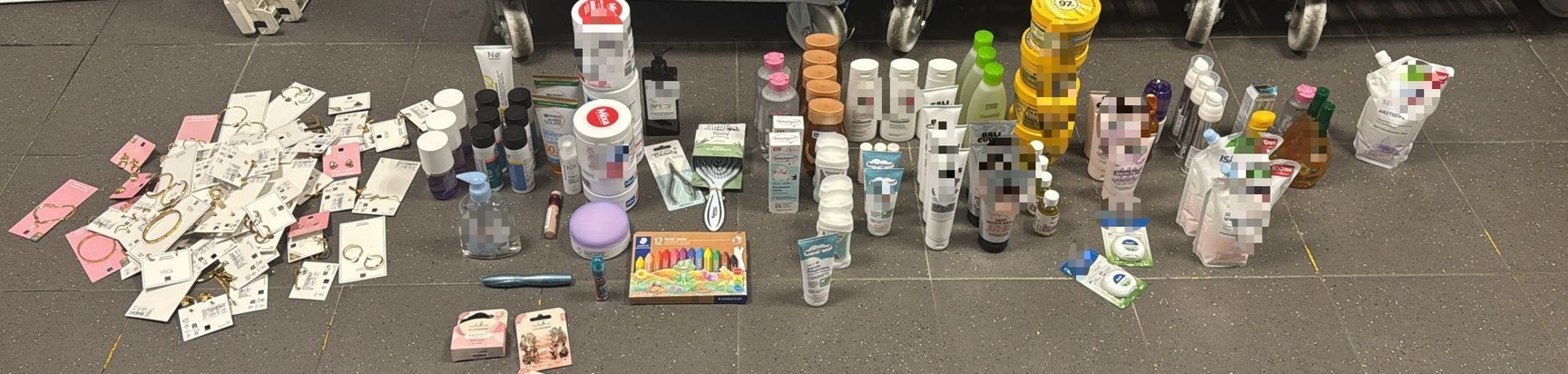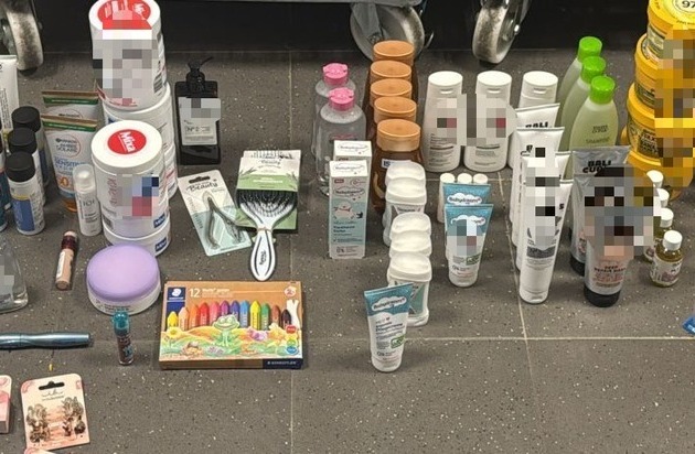 "Bei der Durchsuchung der Bekleidung und der großen mitgeführten Einkaufstasche staunten anschließend aber selbst die erfahrenen Bundespolizisten über den unglaublichen "Fund": "Insgesamt 61 mutmaßlich gestohlene Artikel (überwiegend diverser Modeschmuck, sowie Pflege- und Kosmetikartikel usw.) im Wert von insgesamt 2.064,25 Euro kamen zum Vorschein."