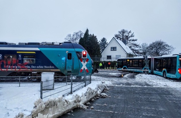 BPOL-KI: Schulbus auf Bahnübergang festgefahren - Regionalexpress leitet Schnellbremsung ein