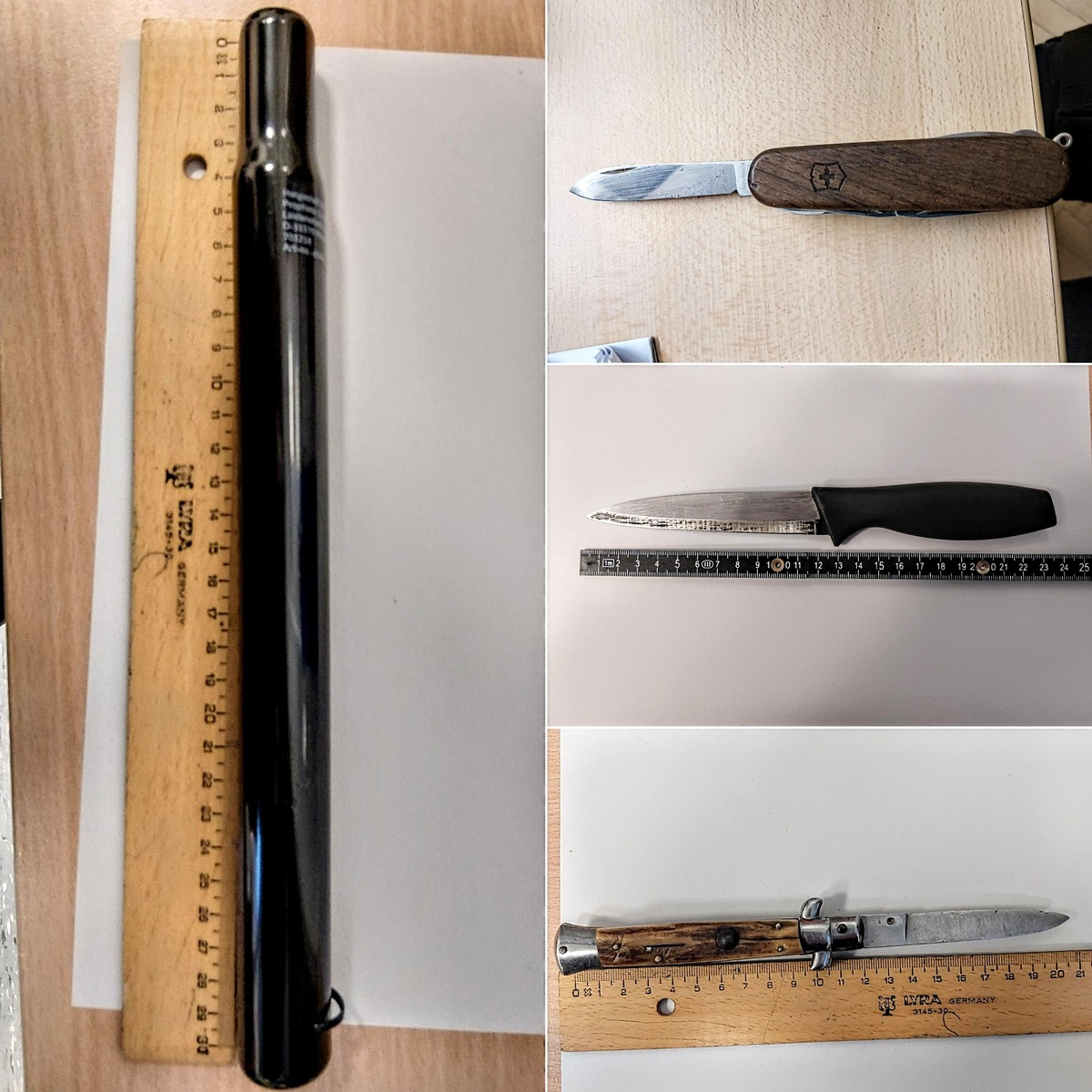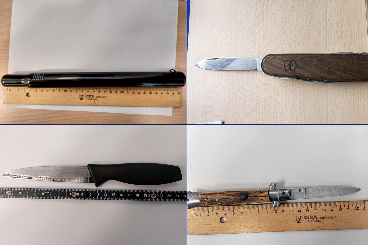 Zwischen 14:00 - 18:00 Uhr kontrollierten die Polizistinnen und Polizisten hierbei insgesamt -47- Personen. Zudem wurden vereinzelt auch ihre mitgeführten Sachen in Augenschein genommen bzw. durchsucht. Im Rahmen der Kontrollen wurden bei -7- Personen insgesamt -8- unerlaubt geführte Messer sichergestellt und entsprechend zu Anzeige gebracht. Hierbei handelte es sich um Einhand-, Taschen-, Cutter- und Küchenmesser. Zudem wurde bei einem 14-jährigen Deutschen eine Eisenstange in der Jackeninnentasche festgestellt. Die Stange wurde präventiv sichergestellt und der Jugendliche an einen Erziehungsberechtigten übergeben. Ein 29-jähriger Deutscher wurde per Haftbefehl gesucht. Die -10- Tage Ersatzfreiheitsstrafe konnten durch seinen Bruder durch Zahlung einer Geldstrafe von 800,- Euro abgewendet werden. Er blieb danach auf freiem Fuß. Des Weiteren wurden -2- Personen festgestellt, die jeweils zur Aufenthaltsermittlung ausgeschrieben waren. Eine davon sogar 15-mal. Aufenthaltsermittlungen dienen der Feststellung der aktuellen Aufenthaltsortes einer Person für Zustellungen, Ladungen oder sonstige strafprozessuale Maßnahmen durch Behörden. Die Einsatzmaßnahmen wurden gegen 18:00 Uhr beendet.