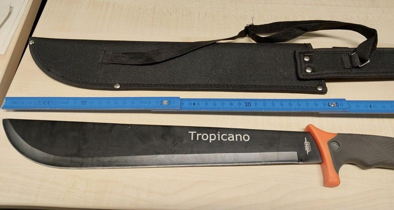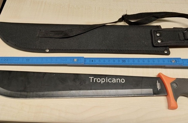 Bei der Überprüfung seiner Personalien stellte sich heraus, dass gegen den Polen ein Haftbefehl der zuständigen Staatsanwaltschaft vorlag. Er war zuvor gerichtlich wegen Verstoßes gegen das Betäubungsmittelgesetz verurteilt worden. Da der Verhaftete den haftbefreienden Betrag von 900,- Euro aufbringen konnte, ersparte er sich eine mehr als zweiwöchige Gefängnisstrafe. Im Fahrzeug fanden die Bundespolizisten eine zugriffsbereite Machete mit einer Klingenlänge von mehr als 37 Zentimetern und stellten diese sicher. Den 38-Jährigen erwartet nun eine Anzeige wegen Verstoßes gegen das Waffengesetz.