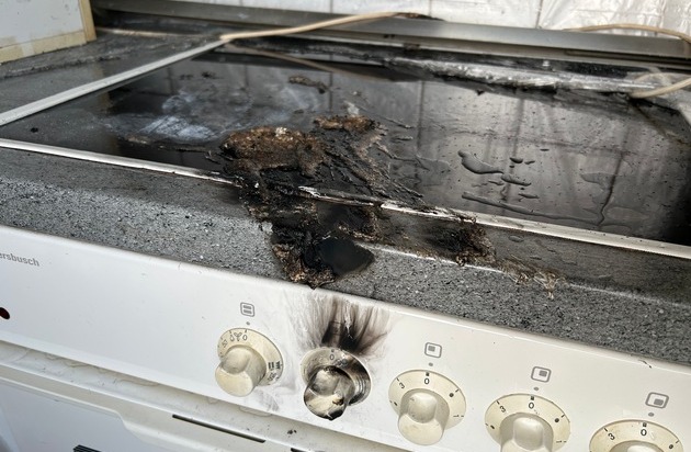 Vor Ort standen dann die Mieter der Wohnung bereits auf der Straße. Sie gaben an, der Brand sei bereits gelöscht und die Wohnung sowie das Treppenhaus verraucht. Der Angriffstrupp hat dann unter Atemschutz das Treppenhaus und die Wohnung begangen. Grund für den Brand war ein Kunststoffregal, was auf dem Herd abgelegt wurde - während die Wohnung renoviert wurde- der Herd wurde aus versehen eingeschaltet und das Regal begann zu brennen. Es wurde durch die Wohnungsmieter selbst gelöscht. Treppenhaus und die Wohnung wurden durch die Feuerwehr natürlich belüftet.