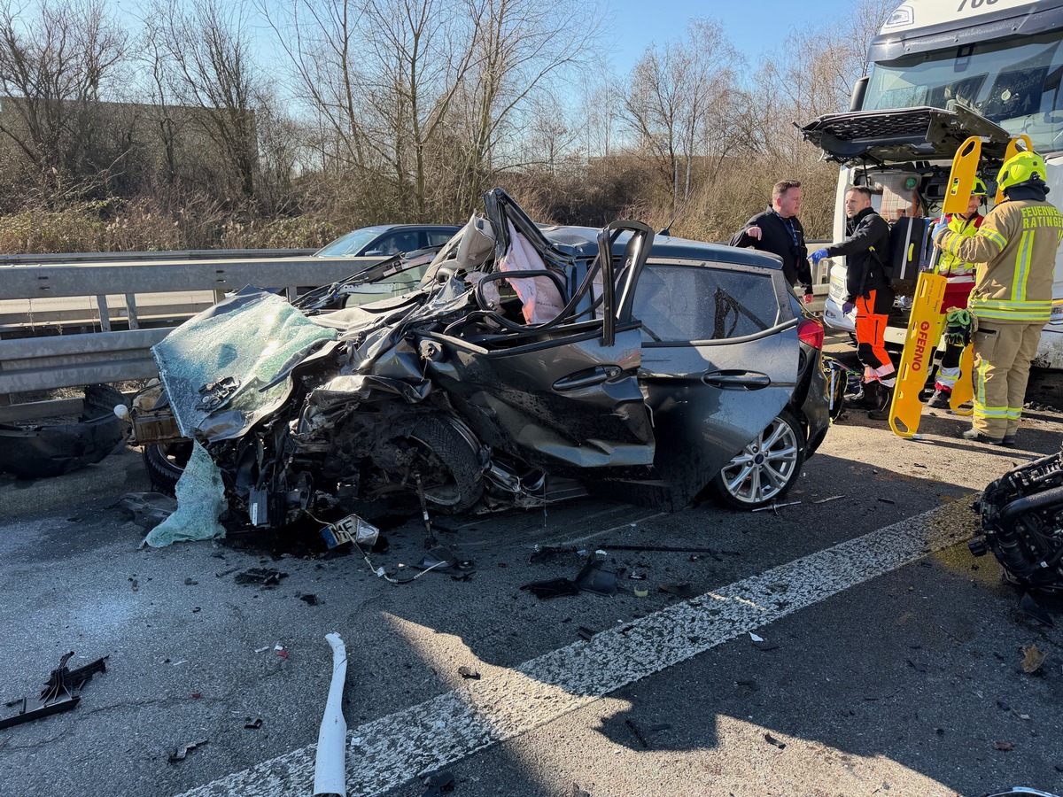 Insgesamt waren in den Unfall zwei LKW und drei PKW verwickelt. Die Erstmeldung, dass ein PKW-Fahrer noch im Fahrzeug eingeklemmt sei, konnte vor Ort nicht bestätigt werden. Der Fahrer konnte mit Hilfe einer zufällig vor Ort anwesenden Notfallsanitäterin der Feuerwehr Velbert das Fahrzeug verlassen. Durch den Rettungsdienst wurden vor Ort drei leichtverletzte Personen untersucht und zwei schwerverletzte Personen nach medizinischer Versorgung mit Rettungshubschrauber und Rettungswagen in verschiedene Krankenhäuser in Duisburg sowie im Kreis Mettmann transportiert. Bereits während der Erstmaßnahmen wurde der Brandschutz sichergestellt und größere Mengen Dieselkraftstoff sowie Hydrauliköl mit Bindemittel abgestreut. Während der noch andauernden polizeilichen Ermittlungen ist die Feuerwehr Ratingen weiter vor Ort. Die Autobahn ist bis auf Weiteres in Fahrtrichtung Köln gesperrt.