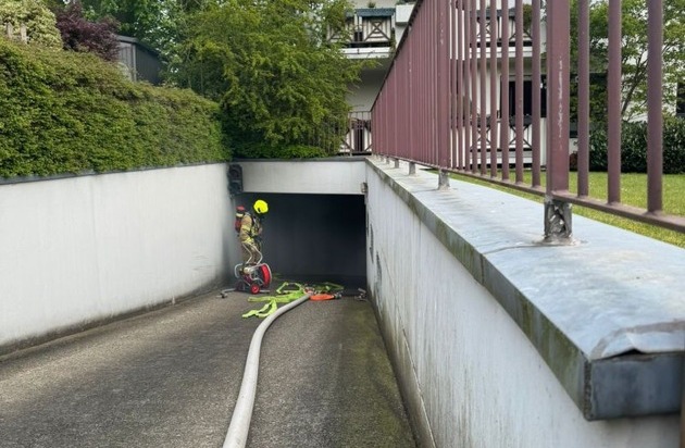 Am Freitag, dem 17. April 2026, gegen 11:48 Uhr, wurde die Feuerwehr Ratingen zu einem vermuteten Brand in einer Tiefgarage im Stadtteil Hösel, im Bereich Rodenwald, alarmiert. Anwohner hatten zu diesem Zeitpunkt eine deutliche Rauchentwicklung gemeldet. Beim Eintreffen bestätigte sich die Lage: Die Tiefgarage war stark verraucht, auffällig war der bläuliche Rauch, der von den Abgasen eines Oldtimers herrührte, die sich in der geschlossenen Garage angesammelt hatten. Aufgrund der erhöhten Kohlenmonoxidkonzentration bestand eine akute Gefährdung für mögliche Personen in der Garage. Ein Trupp rückte umgehend unter Atemschutz in die Garage vor, um sicherzustellen, dass keine Personen gefährdet waren. Gleichzeitig wurden das angrenzende Gebäude sowie die Umgebung sorgfältig überprüft. Zur schnellen Entrauchung setzten die Einsatzkräfte Hochleistungslüfter ein und überwachten den Bereich mit Messgeräten. Verletzt wurde bei dem Einsatz glücklicherweise niemand. Nach etwa einer Stunde konnten Feuerwehr und Rettungsdienst den Einsatz beenden. Die Polizei hat die Ermittlungen zur Ursache und zum Verursacher aufgenommen. Im Einsatz waren 16 Kräfte der Berufsfeuerwehr, des Löschzugs Hösel/Eggerscheidt sowie der Rettungsdienst der Städte Ratingen und Heiligenhaus. Die Polizei des Kreises Mettmann war ebenfalls vor Ort.