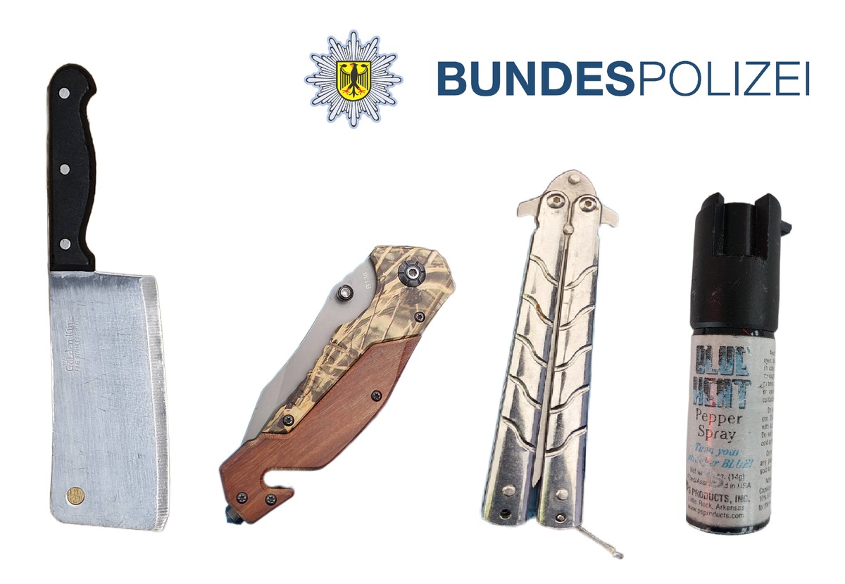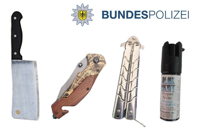 Am Sonntag, gegen 9:00 Uhr, kontrollierten Bundespolizisten zwei weitere polnische Staatsangehörige. Bei der Kontrolle wurden unter anderem ein Butterflymesser sowie ein Reizstoffsprühgerät ohne die erforderliche Kennzeichnung aufgefunden. Gegen beide Männer wurde ein Strafverfahren wegen Verstoßes gegen das Waffengesetz eingeleitet. Die Gegenstände wurden sichergestellt.