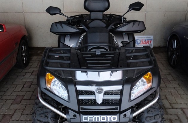 Das Quad der Marke Zheijang CF Moto hat die Bezeichnung "Terralander 800" und war nahezu neuwertig. Der Schaden beträgt nach Angaben des Besitzers etwa 10.000 Euro. Die Polizei bittet Zeugen, die das Quad in der Nacht zum 07.08.2015 oder danach gesehen haben, oder auch Hinweise zum Verbleib machen können, sich unter Telefon 0551/491-2117 zu melden.