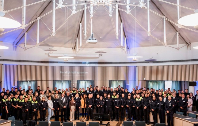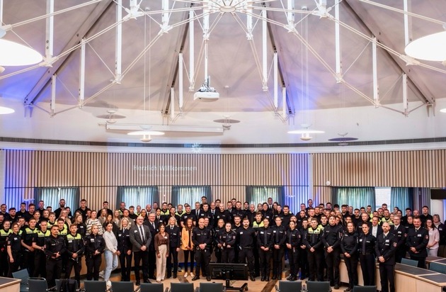 Am Donnerstag (2. Oktober) hat die Polizeidirektion Göttingen rund 200 neue Mitarbeitende begrüßt. Sie kommen frisch von der Polizeiakademie, von anderen Direktionen, aus anderen Bundesländern oder aus der freien Wirtschaft in die Göttinger Behörde und werden künftig in den verschiedenen Dienststellen tätig sein. Zu der Polizeidirektion Göttingen gehören neben der Behörde selbst die Polizeiinspektionen Göttingen, Hameln-Pyrmont/Holzminden, Hildesheim, Nienburg/Schaumburg, Northeim sowie die Zentrale Kriminalinspektion. Die feierliche Begrüßung fand im Sitzungssaal des Landkreis Hildesheim statt. Neben 159 neuen Polizeivollzugsbeamtinnen und -beamten starteten auch 39 Tarifbeschäftigte und Verwaltungsbeamtinnen und -beamte ihre Karriere in der Polizeidirektion Göttingen.