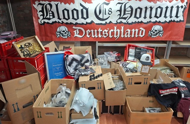 Am Donnerstag, den 5. Februar 2026, wurden Durchsuchungsbeschlüsse in insgesamt elf Objekten in fünf Bundesländern und in der Schweiz vollstreckt. Dabei wurden mehrere tausend rechtsextremistische Tonträger (CDs und Schallplatten) sowie unzählige Mengen von rechtsextremen Szeneartikeln (Pins, Schlüsselbänder, Bekleidung, Sticker und weiteres Merchandise mit Hakenkreuzen, Reichsadler, SS-Totenschädeln, Hitler-Figuren, Blood & Honour-Schriftzug und weiteren Kennzeichen verfassungswidriger Organisationen), Dopingpräparate, erlaubnispflichtige Sprengkörper und Eigenlaborate, mehrere Schlagringe, eine Schreckschusspistole sowie eine Vielzahl elektronischer Kommunikationsmittel sichergestellt.