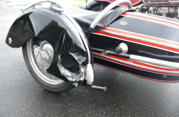 Nachdem er bei Grünlicht angefahren war, übersah er jedoch den ihm entgegen kommenden und bevorrechtigten Kradfahrer. Es kam zum Zusammenstoß mit dem Gespann (Krad mit Beiwagen, Horex Regina), dessen 72 Jahre alter Lenker aus Erkelenz dabei leicht verletzt wurde.
