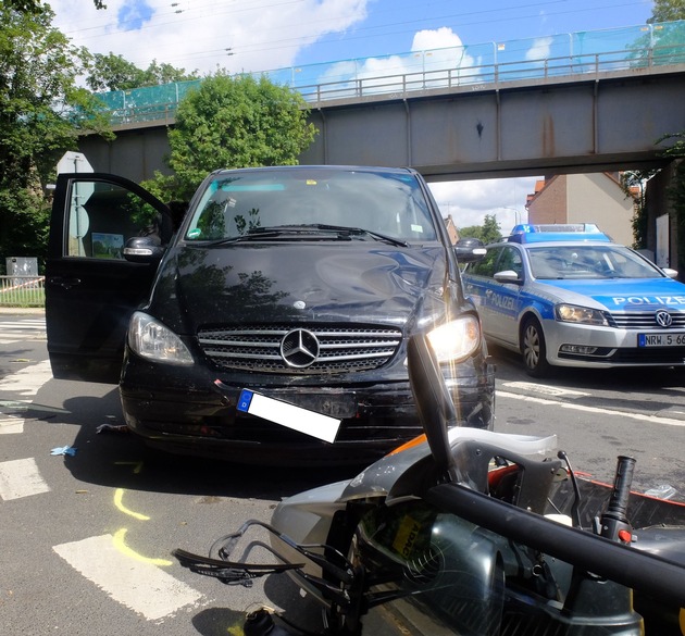 Gegen 10:45 Uhr traf ein Streifenwagen der Polizei an der Unfallörtlichkeit ein. An dem Kreisverkehr, der die Jüngersdorfer Straße mit der Bahnhofstraße und der Schönthaler Straße verbindet, war es zu einem Zusammenstoß zwischen einem Pkw und einem Leichtkraftrad gekommen. Ein 29 Jahre alte Autofahrer aus Vettweiß hatte eigenen Angaben zufolge die 68-jährige ortsansässige Frau auf ihrem Zweirad übersehen, als er die Kreisbahn befuhr. Bei dem Zusammenstoß verkeilten sich beide Fahrzeuge ineinander, so dass die Feuerwehr anrücken musste, um die Langerweherin aus ihrem Gefährt zu befreien. Die schwer verletzte Frau wurde vor Ort notärztlich versorgt und später mit einem Rettungstransporthubschrauber zur stationären Behandlung in ein Krankenhaus geflogen. Der 29-Jährige erlitt einen Schock und wurde noch an der Unfallstelle von Rettungskräften betreut.