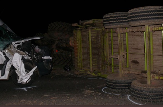 Der Unfallverursacher verletzte sich leicht, der 57-Jährige blieb unverletzt. Der Kleintransporter war nicht mehr fahrbereit und wurde von einem Abschleppunternehmen von der Unfallstelle entfernt. Der Traktor samt Anhänger konnte vom Fahrer unter Mithilfe eines Angehörigen mit eigenen Mitteln wieder aufgerichtet werden und blieb weiterhin fahrbereit.