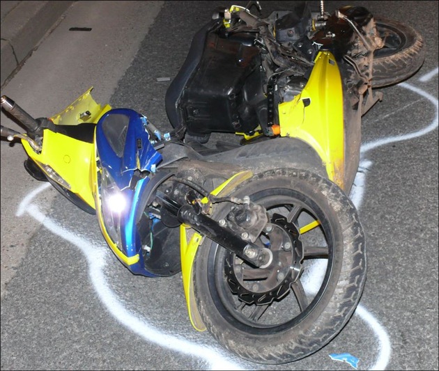 Das motorisierte Zweirad entfernte ein Abschleppdienst von der Unfallstelle. Der Gesamtschaden wird auf circa 2500 Euro geschätzt.