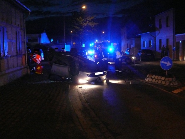 POL-DN: Pkw überschlägt sich an Verkehrsinsel
