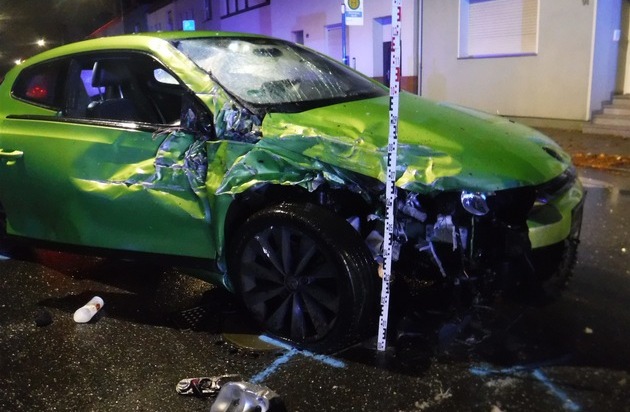 Kurz vor 04.00 Uhr geriet ein Pkw auf der stadteinwärts führenden Nordstraße zu weit nach rechts und prallte mit Tempo gegen einen geparkten Wagen. Durch die Wucht des Aufpralls wurde dieser nach rechts gegen eine Hausfassade katalputiert, nachdem auch noch ein Verkehrszeichen überrollt worden war. Die Gesamtschadenshöhe des Trümmerfelds dürfte jenseits von 20000 Euro liegen. Die beiden unfallbeteiligten Fahrzeuge waren nicht mehr fahrbereit und mussten durch einen Abschleppdienst abgeholt werden.