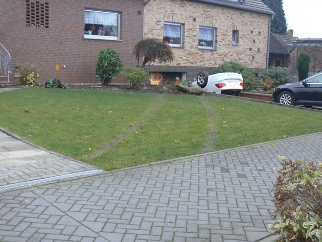 Bei einem Verkehrsunfall in Huchem-Stammeln landete am Samstagnachmittag ein Pkw auf dem Dach und blieb in einer Garagenzufahrt liegen. Der Fahrer wurde dabei verletzt. Kurz vor 15.00 Uhr hatte ein 25-Jähriger aus Niederzier mit seinem Pkw die Köttenicher Straße in Fahrtrichtung Stammelner Straße befahren.